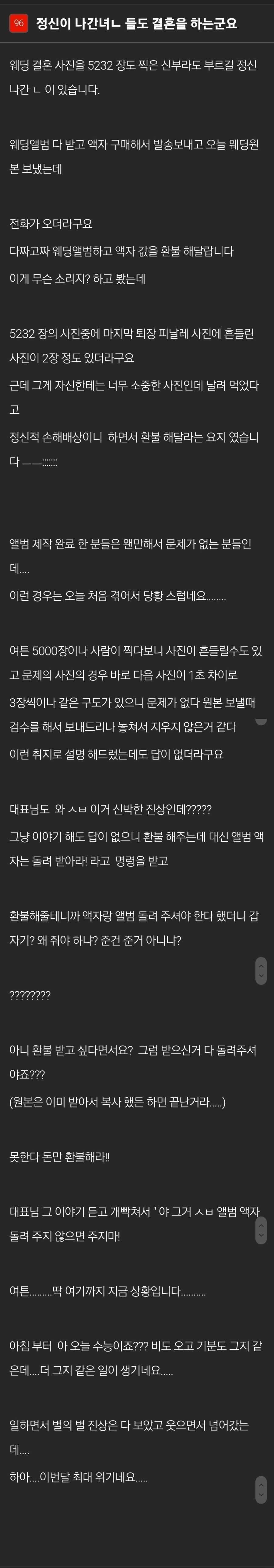 공유 링크 만들기 Facebook X Pinterest 이메일 기타 앱 웨딩 사진촬영 5000장 찍고 환불해달라는 손님 공유 링크 만들기 Facebook X Pinterest 이메일 기타 앱 댓글