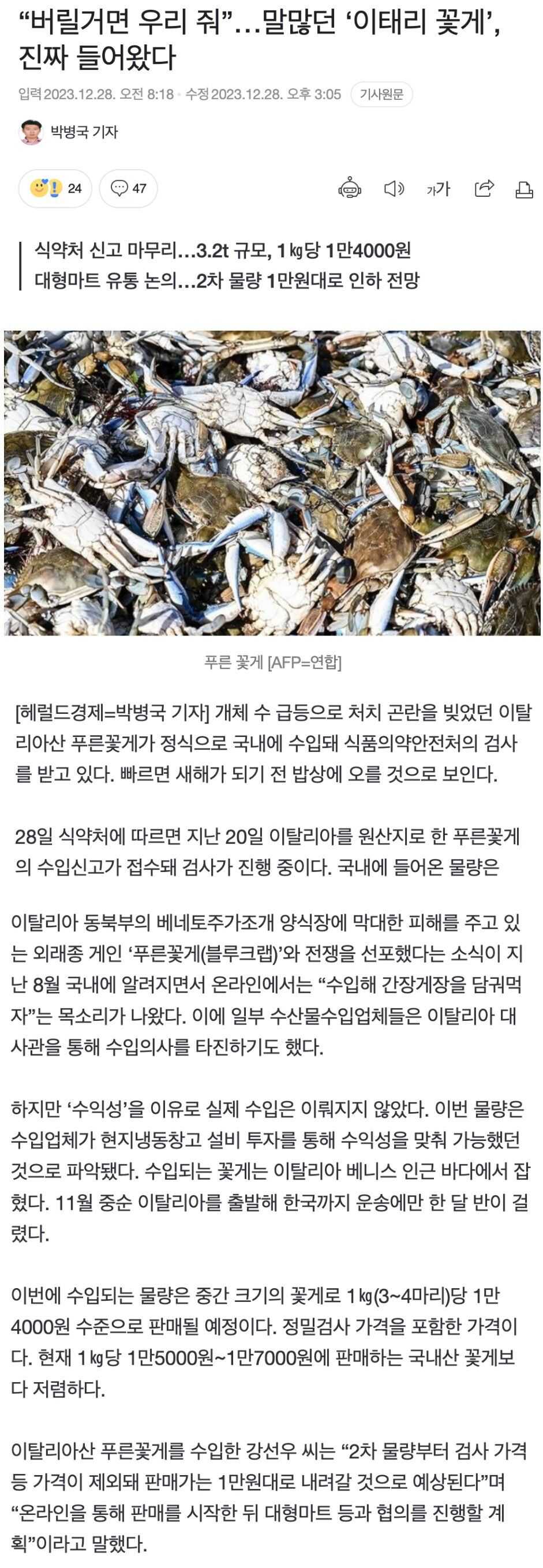 공유 링크 만들기 Facebook X Pinterest 이메일 기타 앱 말 많던 이탈리아 꽃게, 진짜 들어왔다 웰컴 투 코리아 공유 링크 만들기 Facebook X Pinterest 이메일 기타 앱 댓글