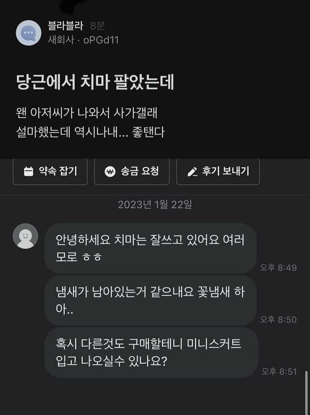 공유 링크 만들기 Facebook X Pinterest 이메일 기타 앱 당근에서 남자한테 치마 판 여자 후기 이런 놈 나올 줄 알았다. 공유 링크 만들기 Facebook X Pinterest 이메일 기타 앱 댓글