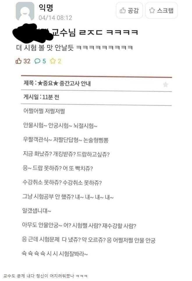 공유 링크 만들기 Facebook X Pinterest 이메일 기타 앱 최신유행어를 배운 교수님의 시험기간 공지 뇌절시험 공유 링크 만들기 Facebook X Pinterest 이메일 기타 앱 댓글